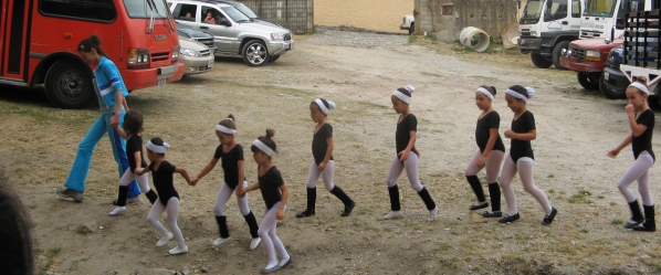 I was going through some photographs I took in Venezuela when I came across the above, taken just outside the Tabay núcleo in Mérida state . Before any incorrect assumptions are made, I’ll hasten to add that Fesnojiv hasn’t expanded to include dance – at least, not formally, but the picture of students on the way to the dance school neighbouring the núcleo seemed more appropriate in a way than yet another shot of the Símon Bolívar Orquesta dancing onstage at the proms.