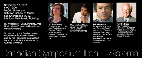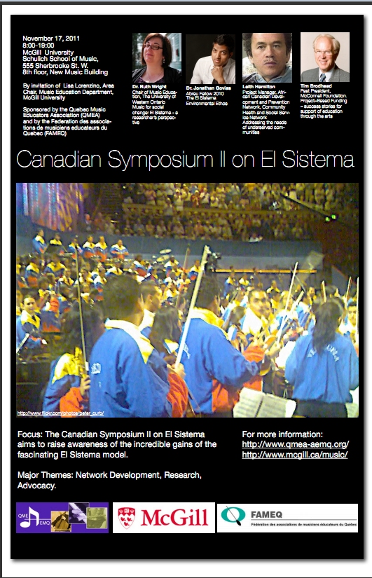 Hot on the heels of the first Canadian Symposium on el Sistema in May at the University of Western Ontario comes the pragmatically named sequel The Canadian Symposium II on El Sistema at McGill University, Montréal on Thursday November 17th.